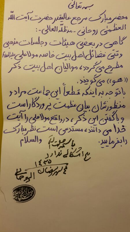 نظر آیت الله صادق روحانی. در مورد هو کشیدن در هیئت